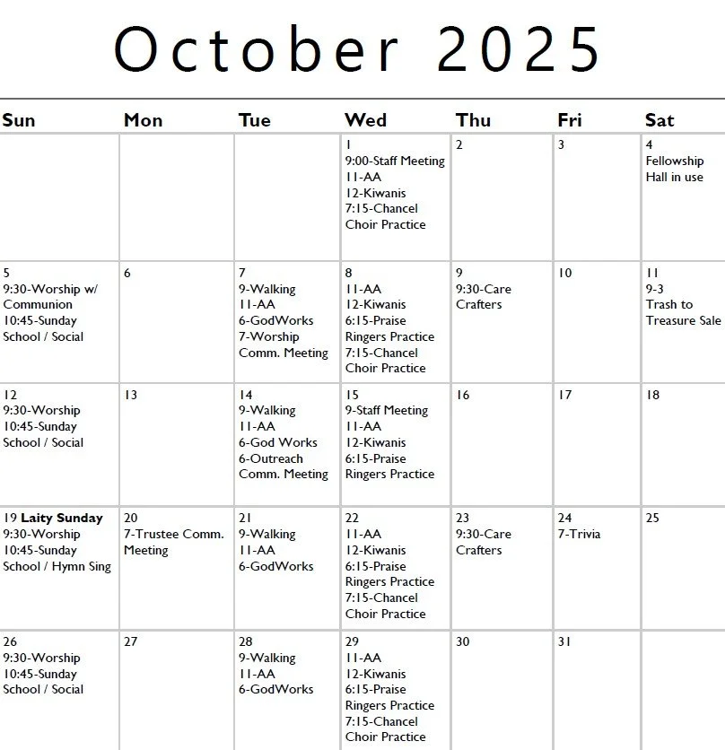 6:15 PM - 7:15 PM Praise Ringers (hand bell) Rehearsal (September - May)